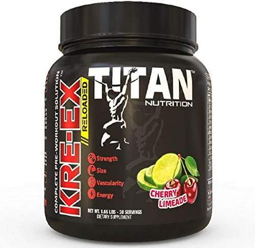 Titan Nutrition KRE-EX Pre Workout Powder, 30 Servings - Creatine, BCAAs, Nitric Oxide and More, for Bodybuilding, Performance, and Recovery - Energy, Stamina, Focus, Pump and Endurance - Cherry Limeade