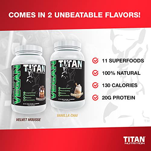 Titan Vegan Protein Powder (2 lbs) - 100% Plant-Based with 9 Essential Amino Acids + Antioxidant-Rich Superfoods - Clean, Non-Dairy High-Fiber Shake - Build Lean Muscle and Burn Fat - Velvet Mousse Titan Vegan Protein Powder (2 lbs) - 100% Plant-Based with 9 Essential Amino Acids + Antioxidant-Rich Superfoods - Clean, Non-Dairy High-Fiber Shake - Build Lean Muscle & Burn Fat - Velvet Mousse