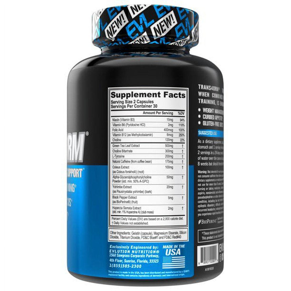 Trans4Orm Thermogenic Fat Burner Supplement - EVL Nutrition Weight Loss Pills Metabolism Booster - Appetite Suppressant for Weight Loss Diet Pills for Men & Women (30 Servings)