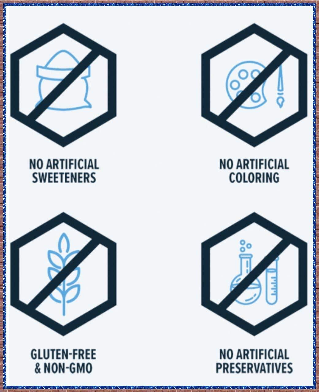 • Material Feature: No Artificial Preservatives, No Artificial Sweeteners, GMO Free, Gluten Free, Vegan