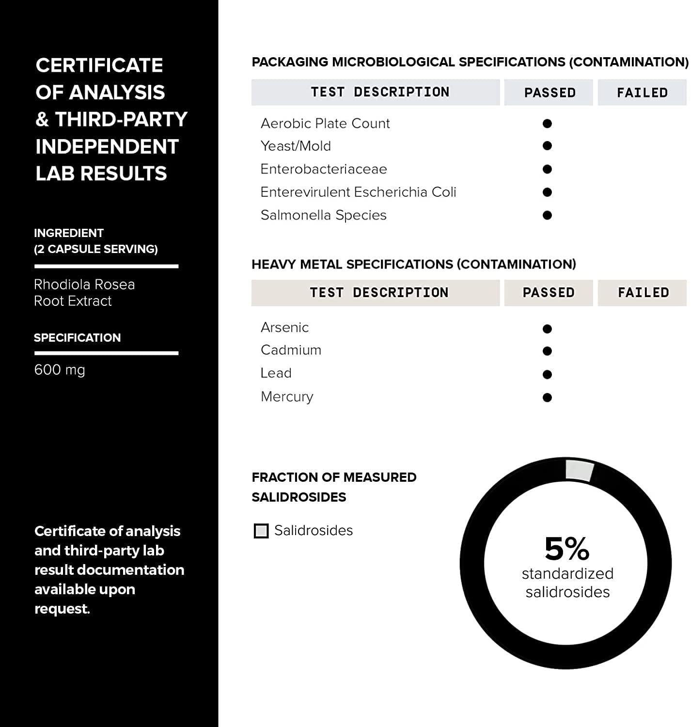 - Setting a New Standard for Purity - To ensure that you are getting the highest quality rhodiola supplement pills, each batch is tested for quality and purity both during and after manufacturing.