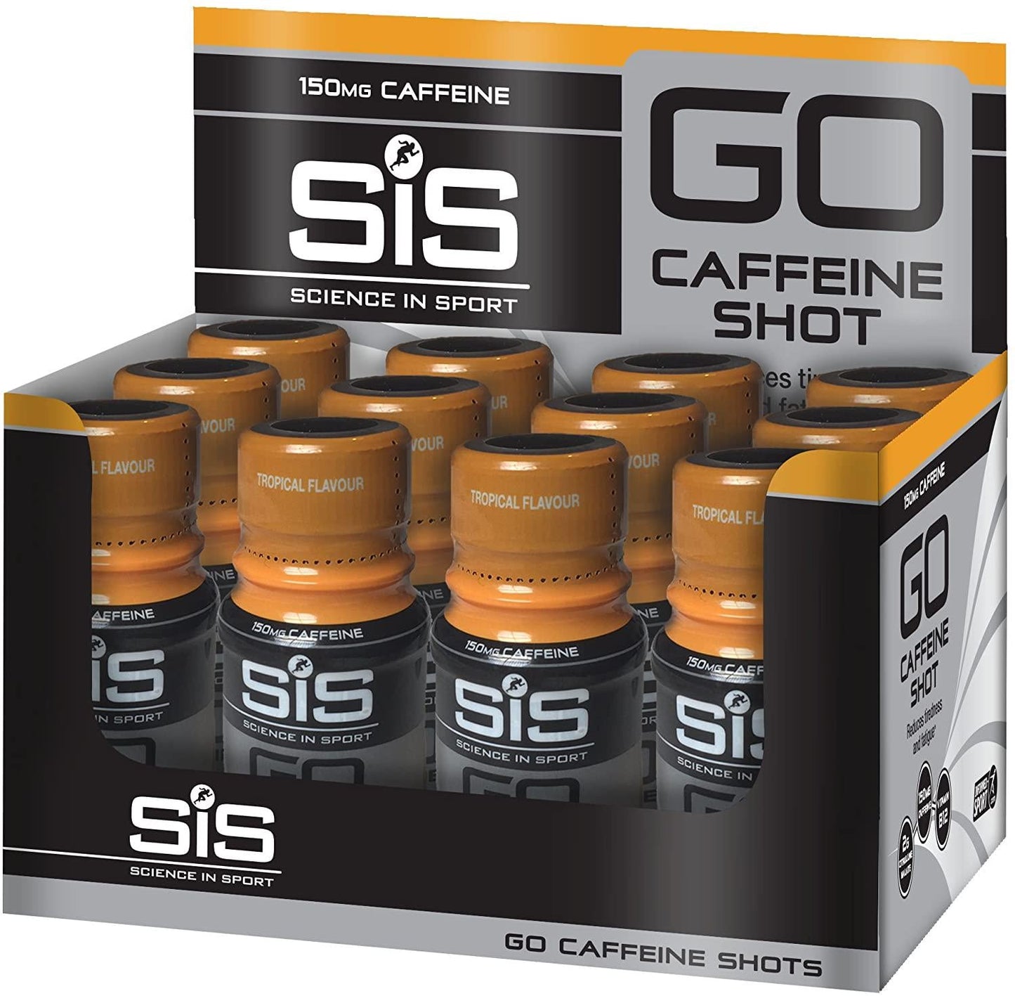 12-pack, caffeine, energy, energy drink, exercise, go caffeine shot, science in sport, tropical