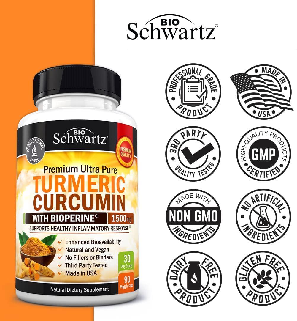 - Bioschwartz professional quality standards: every batch of Bioschwartz turmeric curcumin with bioperine is 3rd-party tested for purity and potency and each bottle is manufactured in the USA using imported and domestic ingredients; this turmeric supplement is formulated for women and men who want to enjoy the benefits of turmeric curcumin supplements
