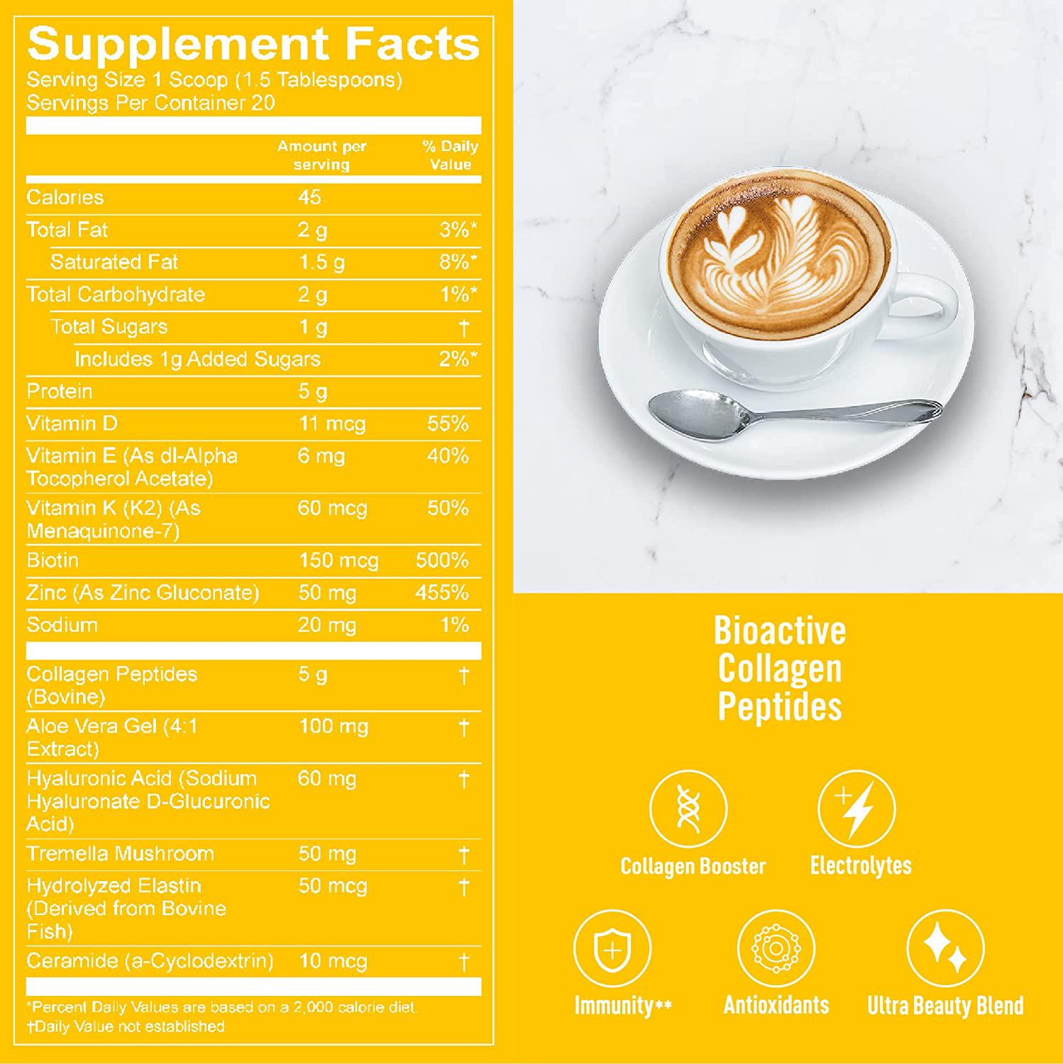 - DELICIOUS: Yes, even your morning coffee or afternoon tea can be an ultra-wholesome part of your daily Collagen routine! A simple scoop of Ultra Beauty Creamer also adds silky, milky deliciousness to your coffee or tea. Available in Hazelnut and Vanilla.