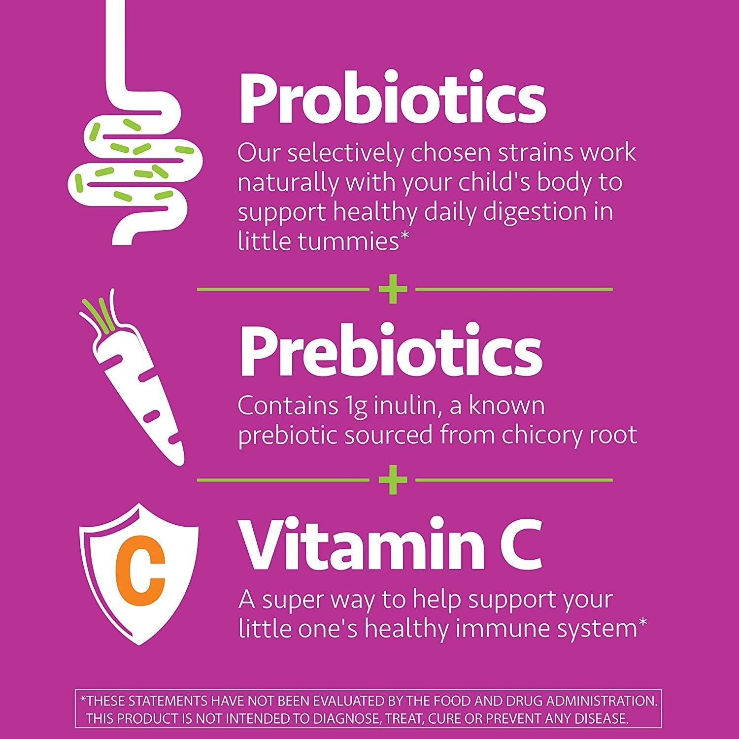 - PROBIOTICS FOR KIDS - These yummy berry-flavored gummies include a selectively chosen probiotic + prebiotic blend to support healthy daily digestion in little tummies