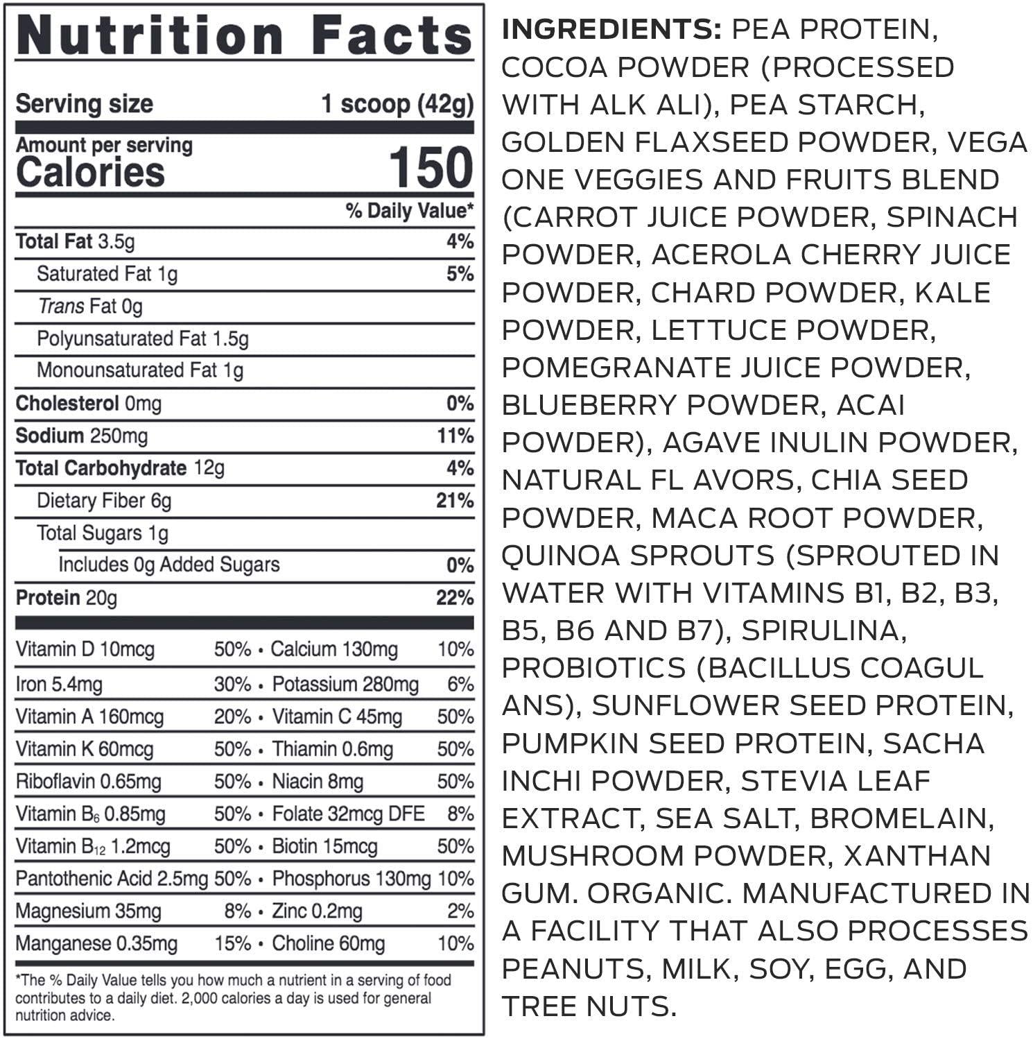 Vega One Organic, Chocolate, Meal Replacement Protein Powder, Vegan, Plant Based, Superfood, Vitamins, Probiotics, Dairy Free, Gluten Free, Pea Protein for Women and Men, 3.7 Pounds (42 Servings)
