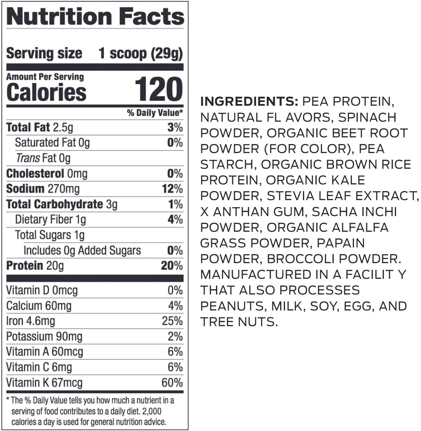 - Veggies and greens with ingredients spinach powder, organic kale powder, and broccoli