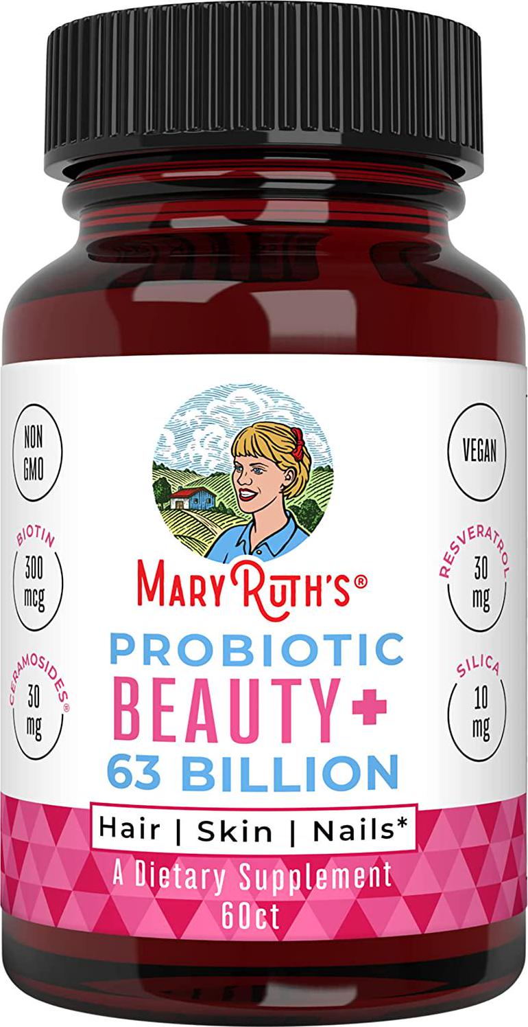 Support your beauty from the inside out with Beauty from Within by MaryRuths. This anti-aging supplement contains a highly potent probiotic & nutrient complex that was formulated to promote skin health, boost collagen production, & nourish hair & nails. Preserve your youth with this beauty vitamin & support a healthier, vibrant you, both inside & out! This complex of vitamins, probiotics, antioxidants & phytoceramides was designed to work together synergistically for your beauty! Biotin, Vitamin C, and Silica, from Organic Bamboo Stem and Leaf Extract, are essential nutrients for hair, skin & nail heath, & support the bodys natural collagen production. It also contains a 63 Billion CFU Probiotic Proprietary Blend to help support healthy digestion & a stronger immune system. Clinical studies show fast-acting Ceramosides to enhance skin health, increasing skin hydration and elasticity, decreasing wrinkles, while Red Orange Complex reduces age spots & UV-induced redness & SynBalance ProBeautyShield modulates chronic inflammation, improves symptoms of Atopic Dermatitis & aids the body in producing B-group vitamins. You can have peace of mind knowing that this supplement is made with organic ingredients & is vegan, non-GMO, Keto & Celiac Friendly. It is sugar-free, nightshade free, dairy free, gluten free, soy free & nut free. Suggested serving is 2 capsules daily & there are 60 capsules per bottle. We are excited for you to try our Beauty from Within Probiotic, formulated by Certified Health Educator, Nutritional Consultant, Culinary Chef MaryRuth Ghiyam. Let the pure ingredients of this beauty boost work for you & take this important step toward supporting overall wellness! If you are not fully satisfied in any way, simply contact us for a full refund at any time. As a small family-owned company, we want all of our customers to feel family too! :)