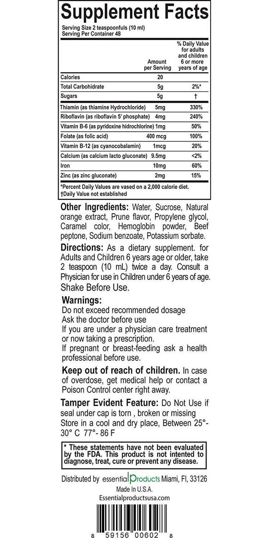 - About the Product Suplemento vitaminico para suplir los requerimientos dieteticos diarios Ideal para la anemia, agotamiento fisico, debilidad Para la convalecencia de enfermedades prolongadas. Incrementa la vitalidad y el apetito.