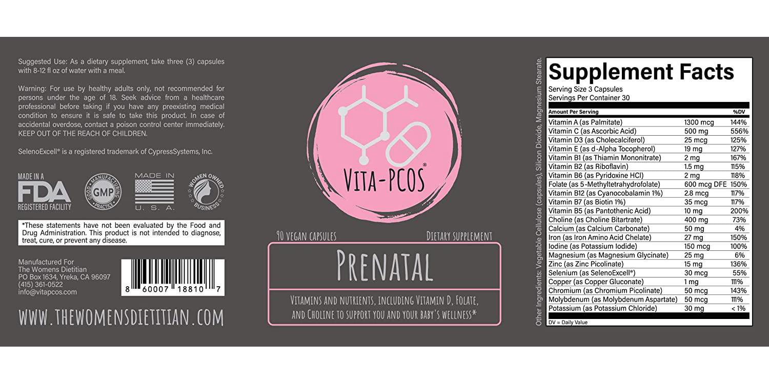 - THE EARLIER YOU START ON A PRENATAL SUPPLEMENT THE BETTER! Women need sufficient nutrients stored to even begin creating a baby. VITA-PCOS prenatal vitamins support both your growing baby and help you get a jump start on a healthy pregnancy even before conception.