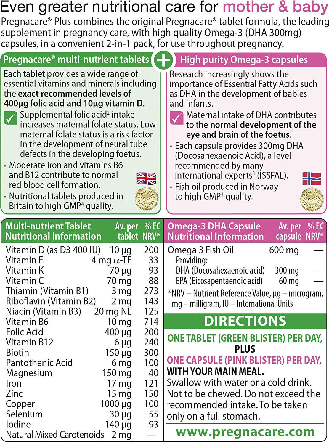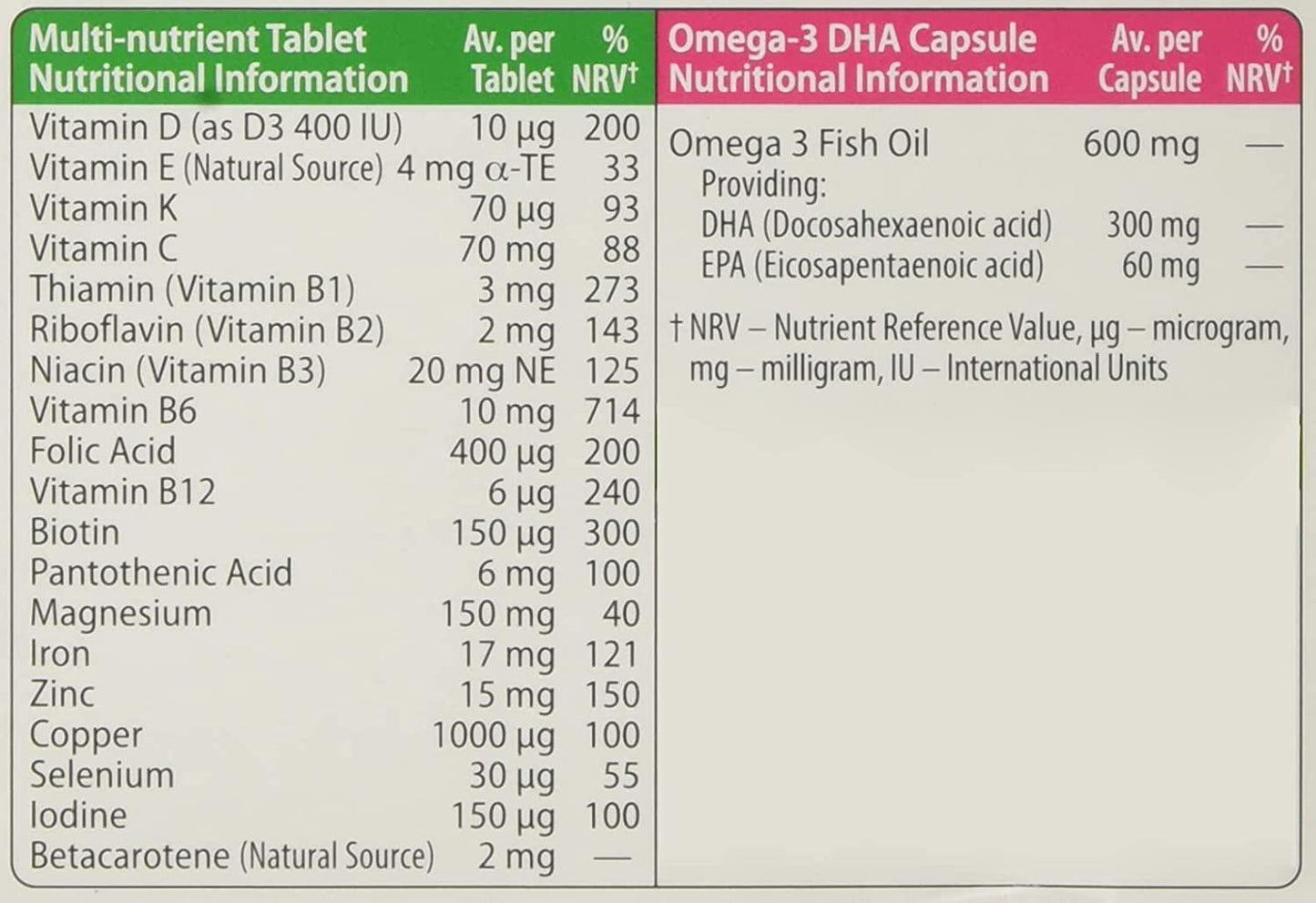 folic acid, omega-3, pregnacare, prenatal vitamins, tablets, usa, vitabiotics