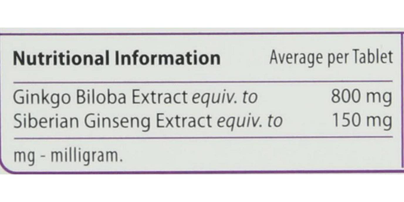 - Each Ultra Ginkgo & Ginseng tablet from Vitabiotics contains the equivalent of 800mg Ginkgo Biloba Extract & 150mg Siberian Ginseng Extract.