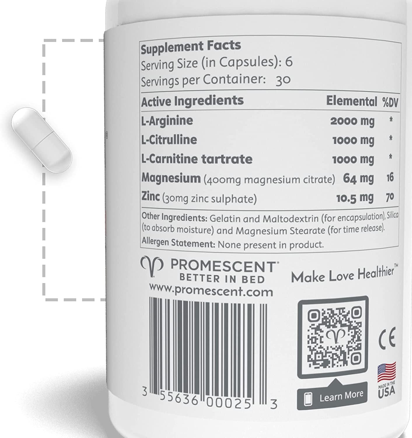 amino acids, energy boost, heart health, l arginine, nitric oxide booster, promescent, usa