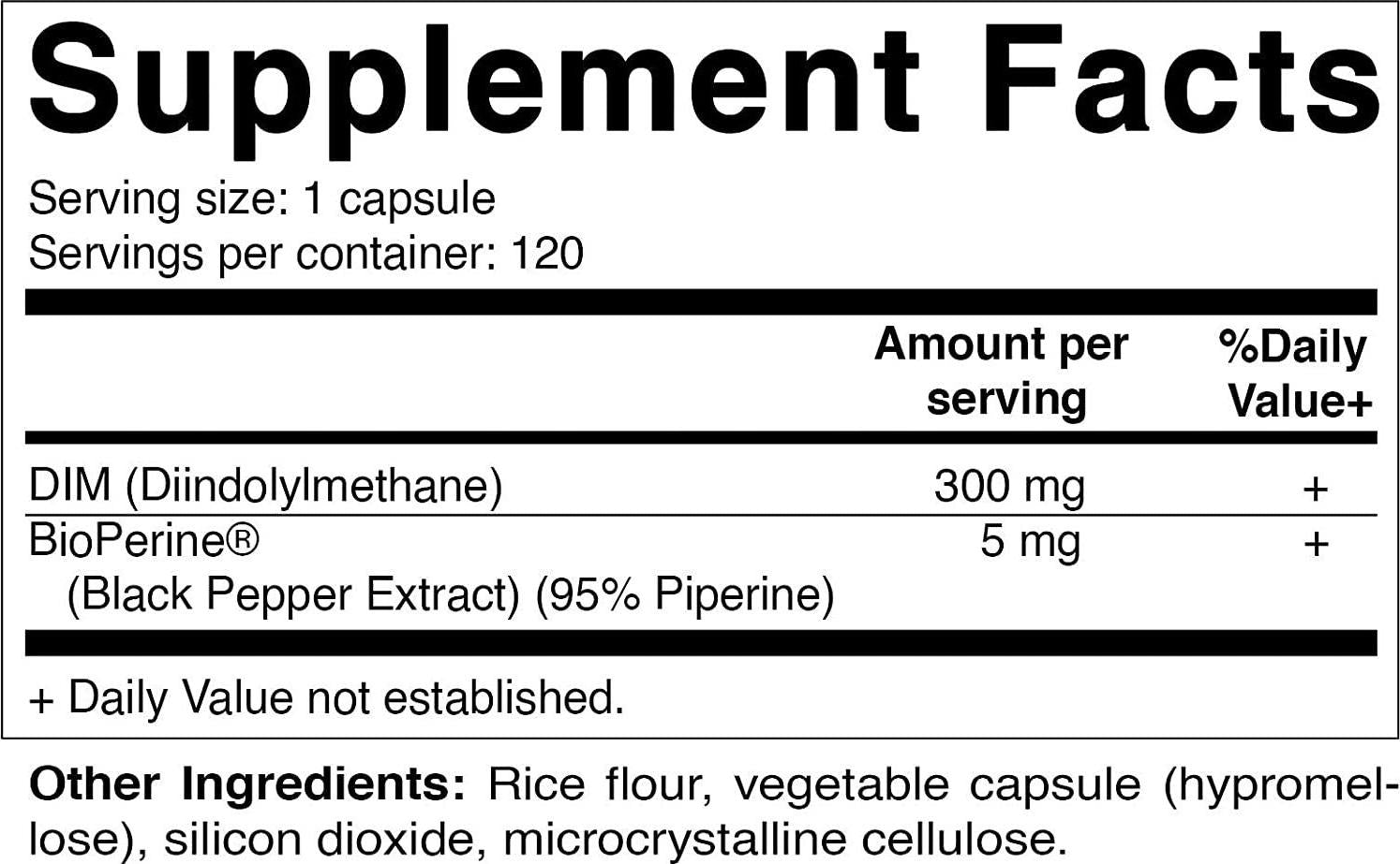 Vitamatic DIM (Diindolylmethane) Plus BioPerine 300mg, 120 Veggie Capsules - 4 Months Supply.