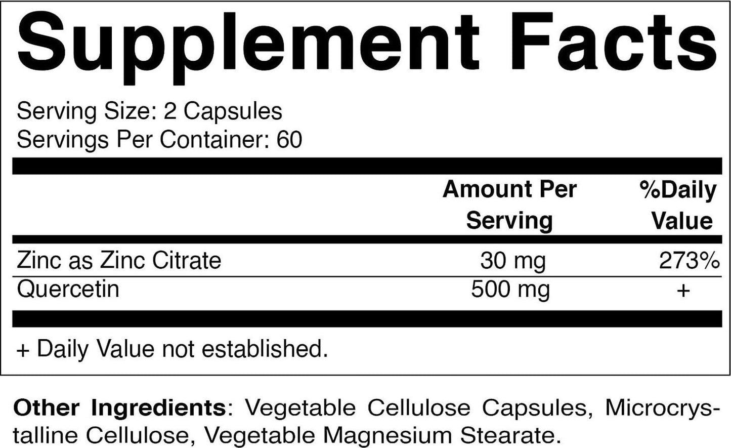 capsules, immune support, non-gmo, quercetin dihydrate, vitamatic zinc quercetin, zinc citrate