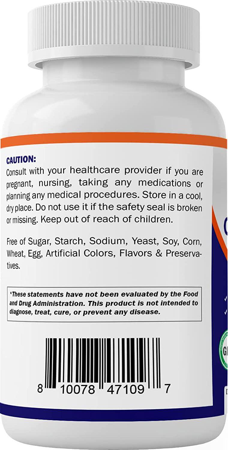 - Free of sugar, starch, sodium, soy, yeast, corn, wheat, egg, artificial color, flavor & preservatives.