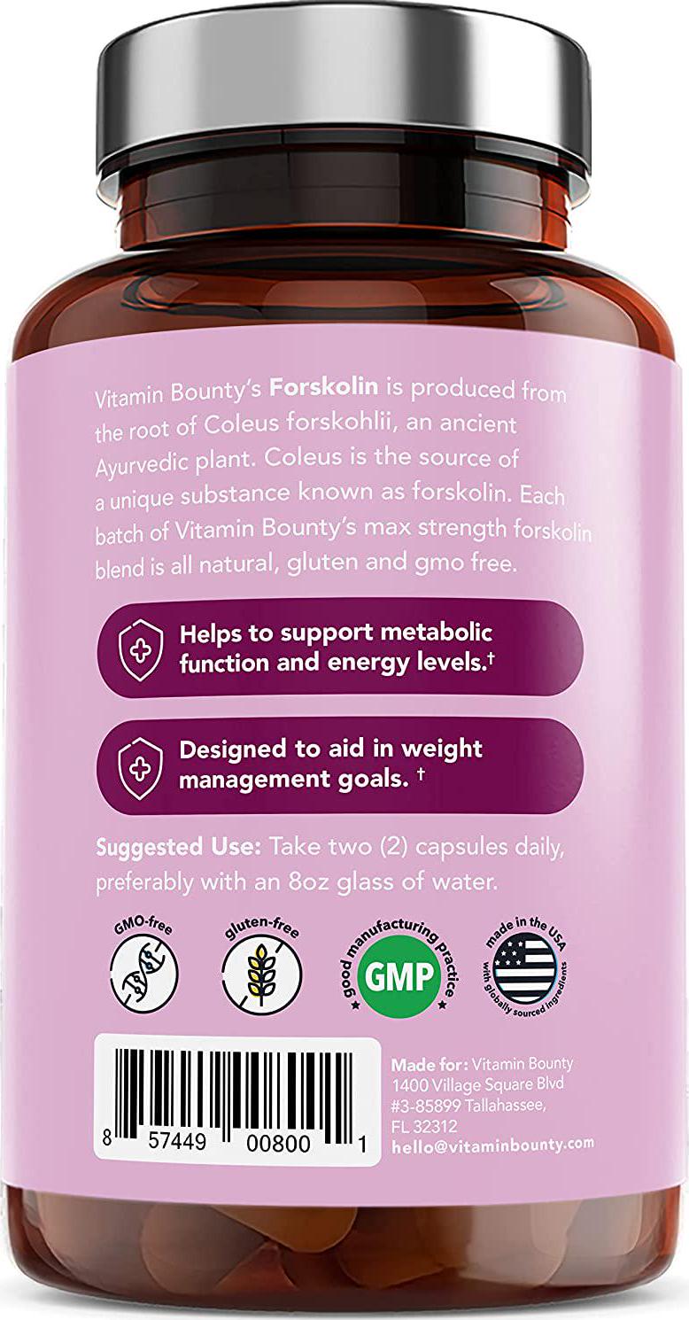 Vitamin Bounty Forskolin Coleus Forskohlii Extract, May Help Boost Metabolism, Plant Based, Non GMO, Gluten Free and Made in USA, 60 Capsules