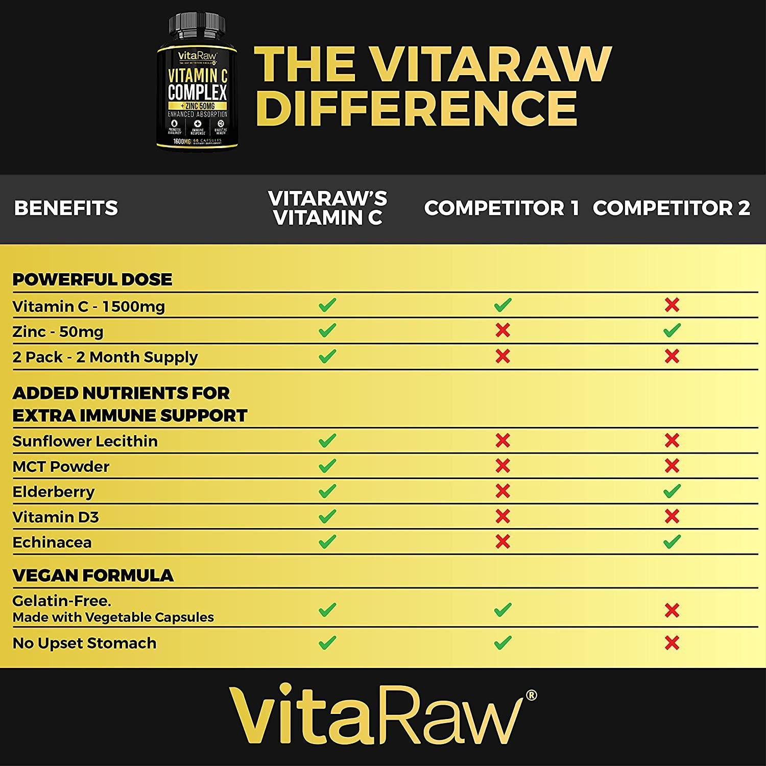 - Vitamin C & Zinc Vitamins For Immunity Support. VitaRaw's elite C Vitamin with Zinc supplements 50mg are scientifically blended only with all-natural ingredients. Zinc capsules + Ascorbic Acid Vitamin C Supplement + plant-derived Sunflower Lecithin. Implement in your regimen the most innovative, top-notch antioxidants supplement and immunity booster. When it comes to immune system vitamins for adults, rely on Vitaraw Nutrition for a powerful immunity boost