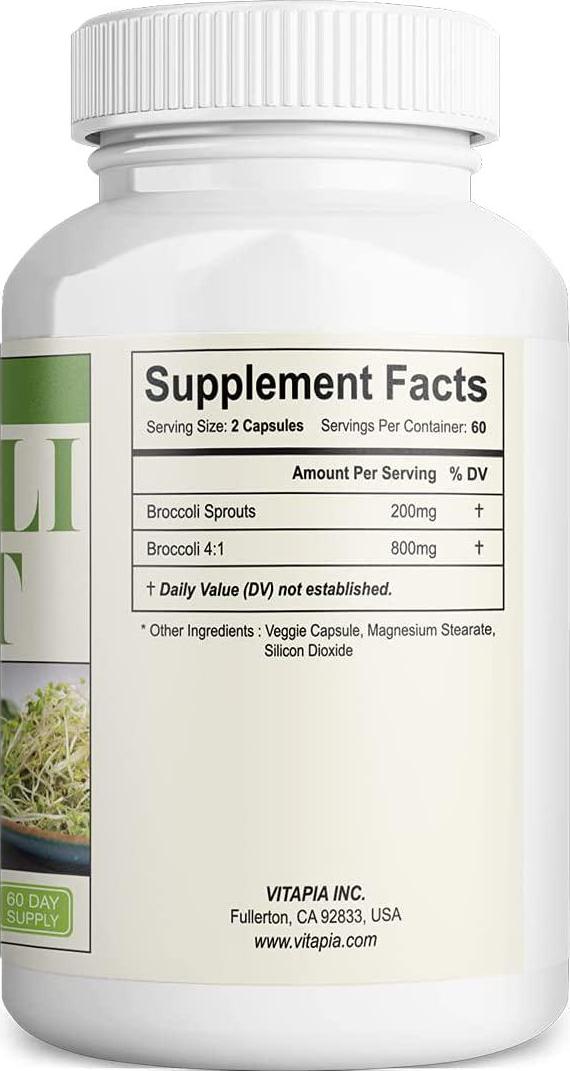 Vitapia Broccoli Sprout 1000mg(4000mg) per Serving - 120 Veggie Capsules - Vegan and Non-GMO - Broccoli Sprout 4:1 Extract - Supports Healthy Detoxification, Anti-Inflammatory, Antioxidant