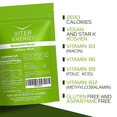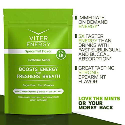 Viter Energy Original Caffeine Mints Spearmint Flavor 6 Pack and 1/2 Pound Bulk Bag Bundle - 40mg Caffeine, B Vitamins, Sugar Free, Vegan, Powerful Energy Booster for Focus and Alertness
