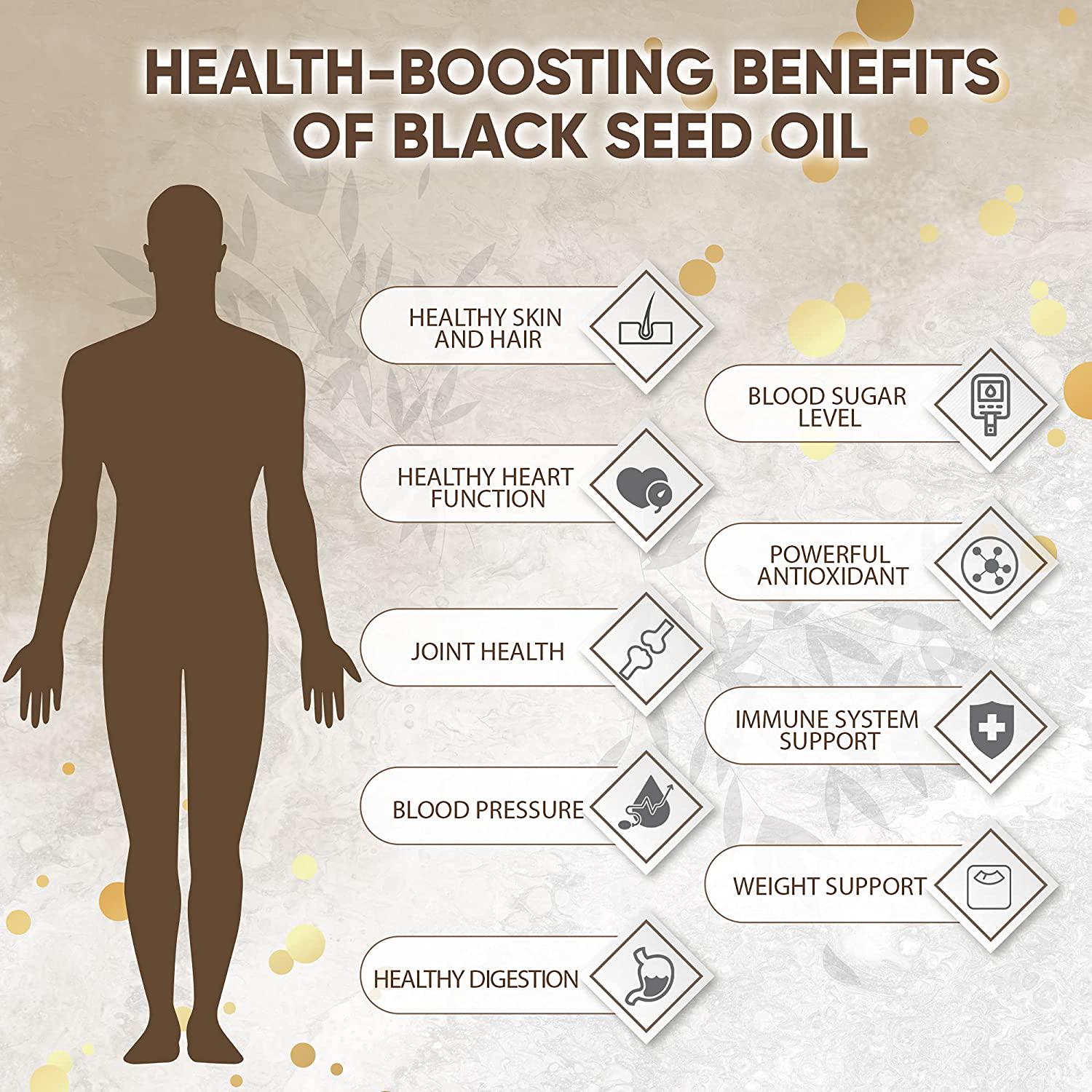 - 1000mg FORMULA Black Seed Oil Supplement is high in essential fatty acids that are vital to immune support and healthy inflammatory response. Black cumin oil also contains thymoquinone which has antioxidant properties that promote scavenging of free radicals for liver health.