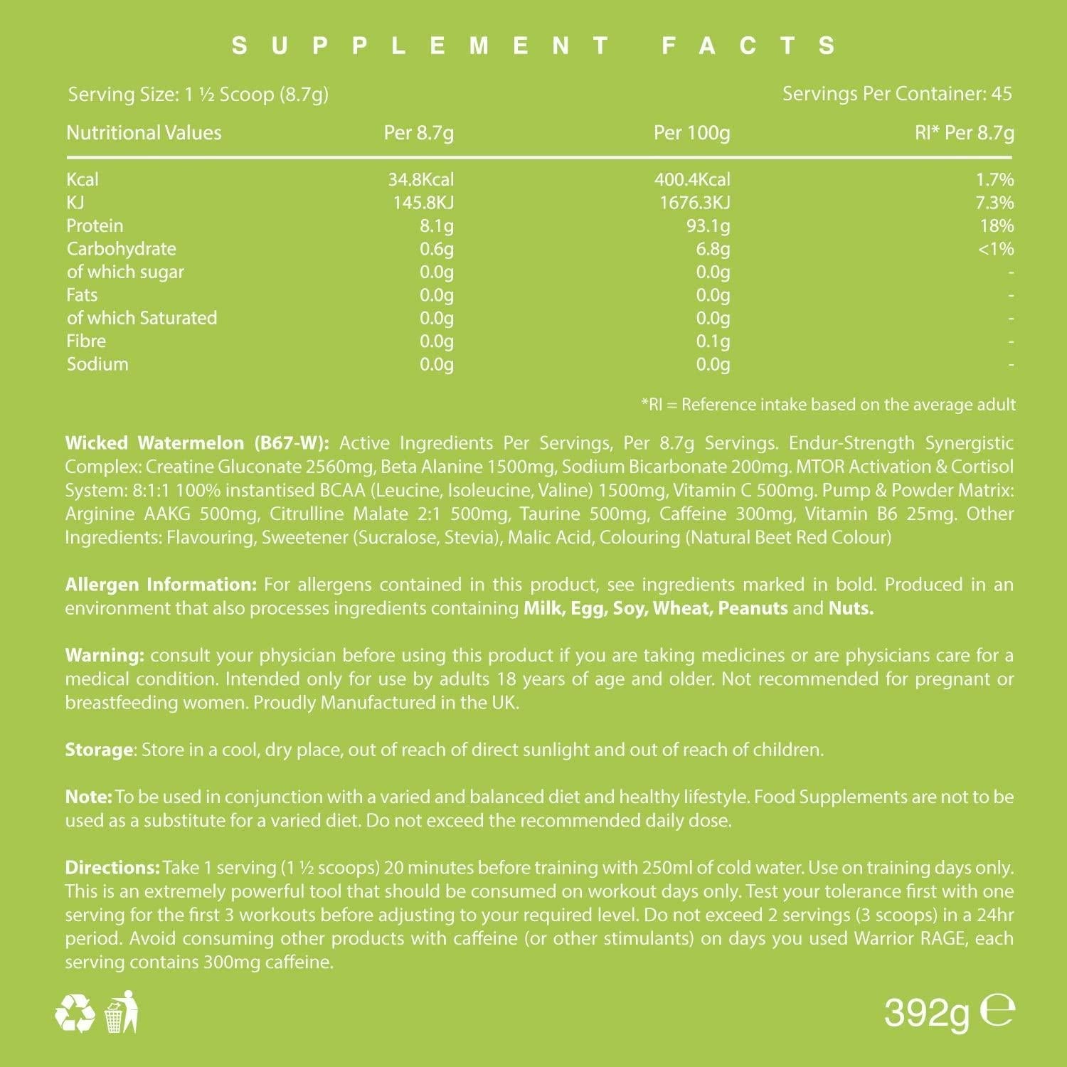 Warrior - RAGE Pre Workout Powder Wicked Watermelon 392g, WA-RG-045-03