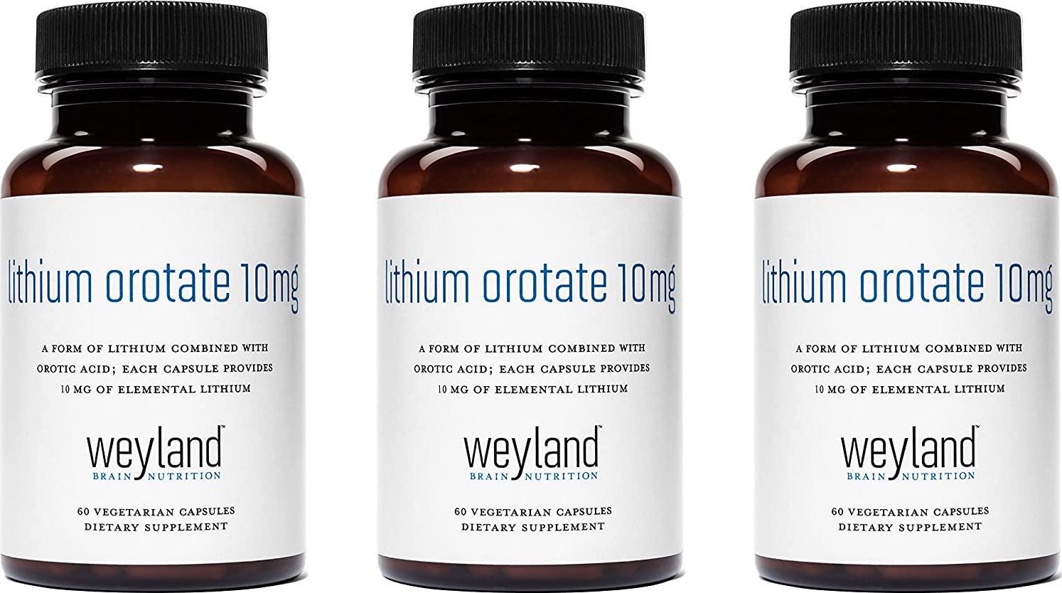 Weyland Brain Nutrition: Lithium Orotate 10mg (3 Bottles), 180 Vegetarian Capsules, Lithium Supplement Supports Healthy Mood, Behavior, Memory and Wellness