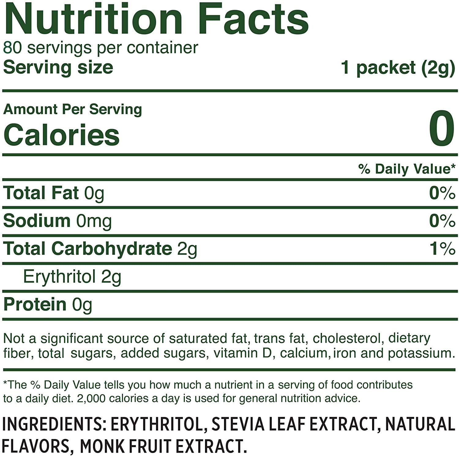 - ZERO CALORIE SWEETENER: Contains no calories, no preservatives, no artificial flavors and no artificial colors; It is gluten free, Non-GMO Project Verified