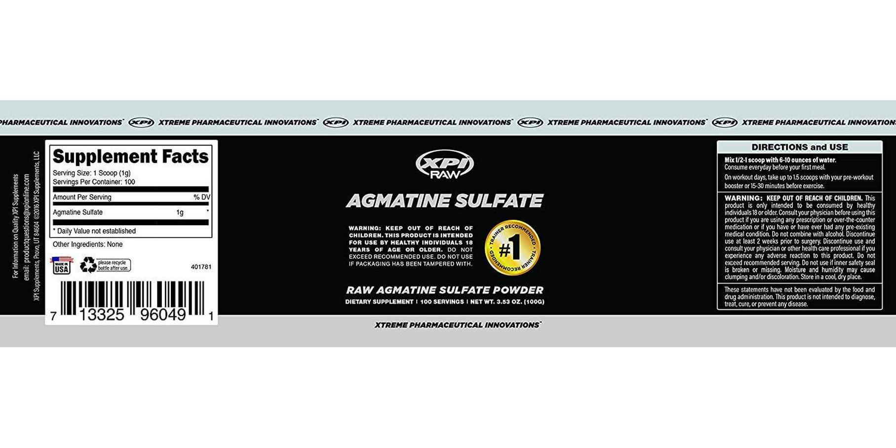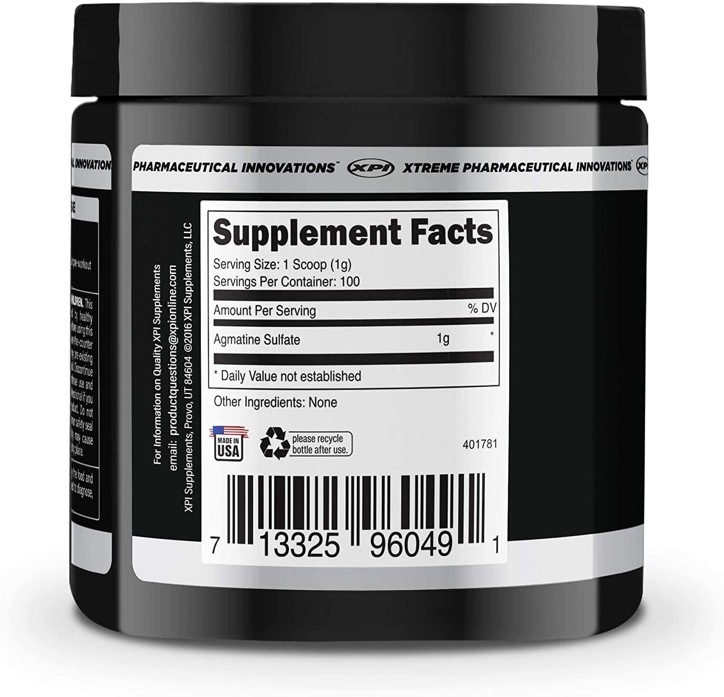XPI Raw Agmatine Sulfate Powder 100 Grams, 100 Servings - Improve Strength, Build Muscle, Made in The USA