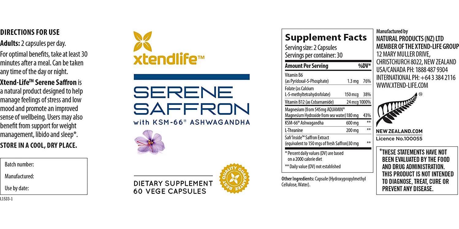 - SYNERGISTIC SOLUTION FOR STRESS: Each of the ingredients in Serene Saffron works in a different way to help your body combat feelings of stress, feelings of being overwhelmed and low mood. Over time, you can expect an improved sense of wellbeing.
