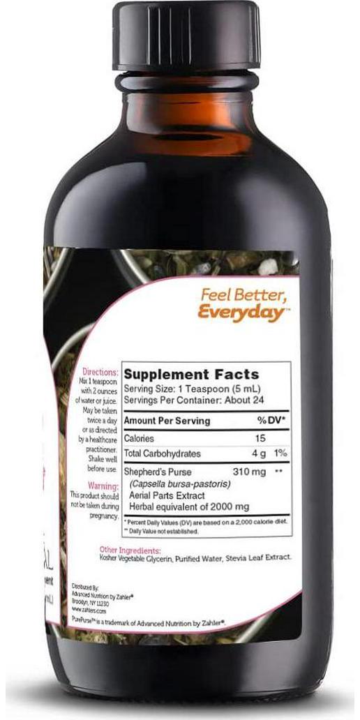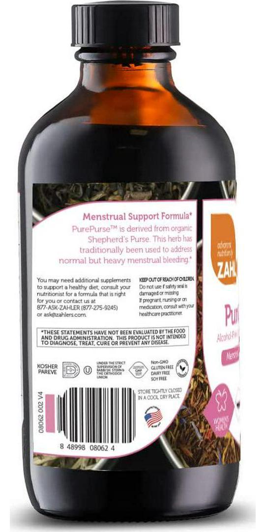 Zahler PurePurse, Liquid SHEPERD’S PURSE which helps reduce staining, All Natural LIQUID Menstrual Support Formula, Certified Kosher,4oz