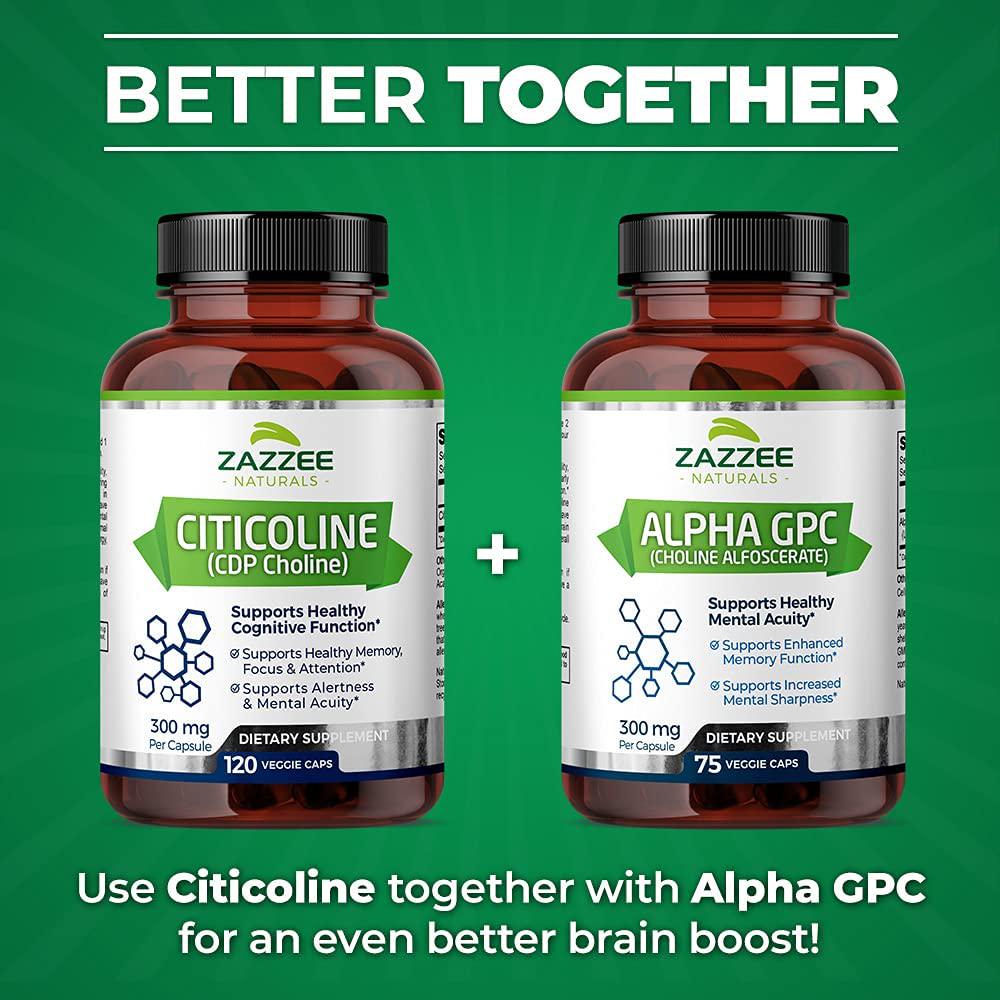 Zazzee Citicoline CDP Choline 300 mg, 120 Veggie Capsules, Vegan, Non-GMO and All-Natural, Pharmaceutical Quality, Contains Organic Stabilizers