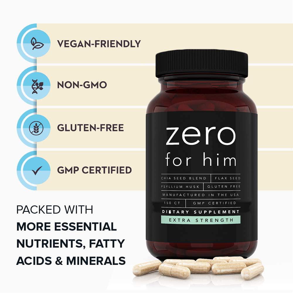 Zero for Him Extra Strength - Fiber Supplement for Men - 150 Pure Supplement Vegan Capsules - High Fiber Supplement Pills - Daily Dietary Fiber Supplement Chia Flaxseed Psyllium Husk Fiber Pills