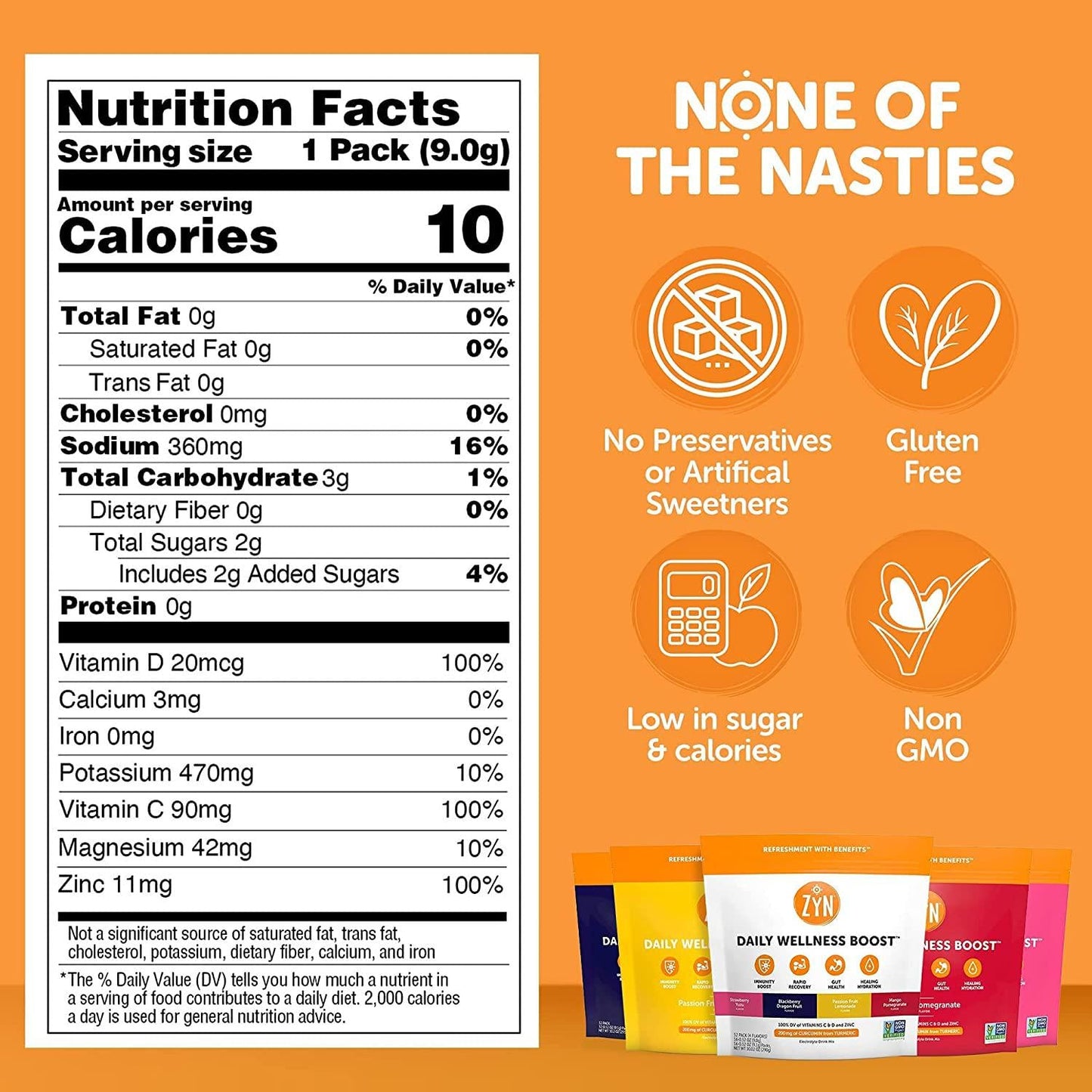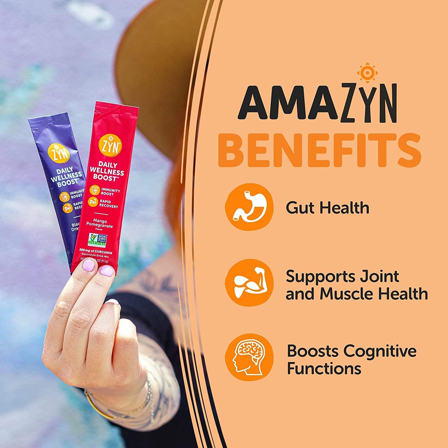 - Daily Wellness Drink Mix - Enjoy all the ama-ZYN flavors with a Variety pack: Strawberry Yuzu, Mango Pomegranate, Blackberry Dragon Fruit, and Passion Fruit Lemonade. Drink it daily to recharge, refuel, rehydrate, and repair while you re on the go.